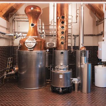 Die Roggenmaische wird in kupfernen Hybrid-Brennblasen gepumpt & dort schonend destilliert. Die erste Destillation findet in einer Pot Still statt, der zweite Destillationsprozess in einem sogenannten Aromator über 5 kupfernen Glockenböden.